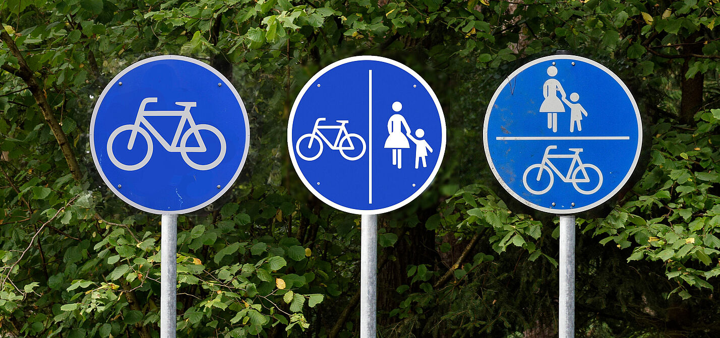 Benutzungspflichtige Radwege – blaue Schilder bedeuten Radweg-Pflicht
