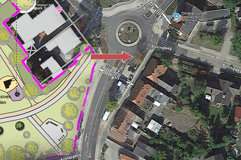 Beim Anschluss an den Kreisverkehrsplatz Winsener Straße wird derzeit nur die Richtung zu den Schulen berücksichtigt. Der Anschluss zum Böningweg ist für den geplanten Radwegenetzausbau mit der Querung der Bahnstrecke von besonderer Bedeutung. Diese Verbindung ist in allen drei Varianten nicht vorgesehen und muss ergänzt werden.